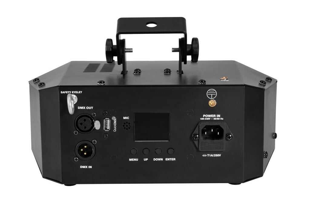 - Commandé via stand-alone; commande de la musique via microphone; DMX; fonction maître/esclave; QuickDMX via USB (facultatif); W-DMX by Wireless Solution via USB (facultatif); CRMX by LumenRadio via USB (facultatif)