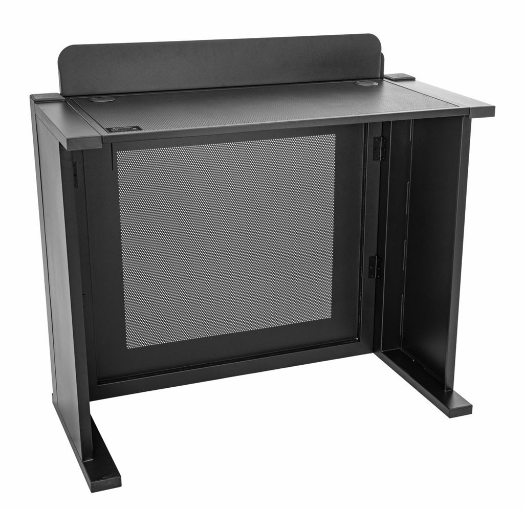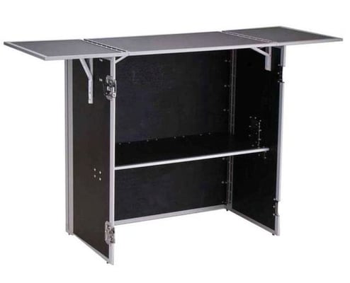 Le DJ Stand Showgear de la série Mammoth est un stand pour DJ complet et stable qui comprend une barre lumineuse. Il est équipé de deux pupitres séparés, l'un pour l'équipement du DJ, et le pupitre inférieur pour les amplis, les CD ou tout autre accessoires.