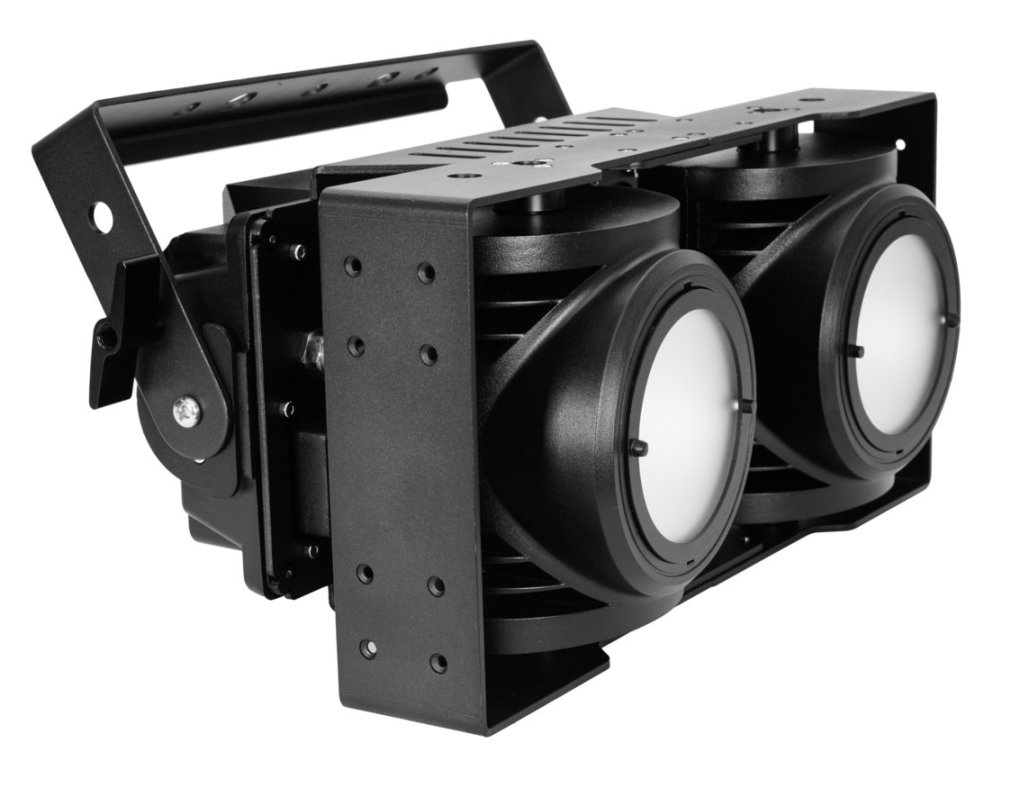 Weather-proof audience blinder with 2x 100 W COB LED in warm white