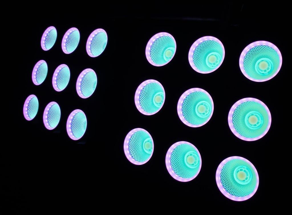 9 x 24 W COB (Chip-on-board) CW/WW (mélange de couleurs homogène)