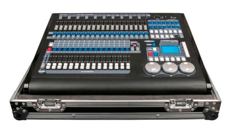 Console hybride professionnelle pour le contrôle de lumières conventionnelles et lyres asservies.
