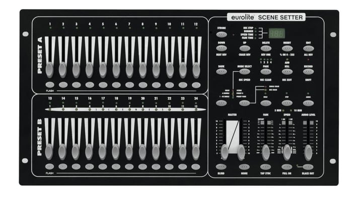 - 24 faders, 2 pages for direct control via DMX