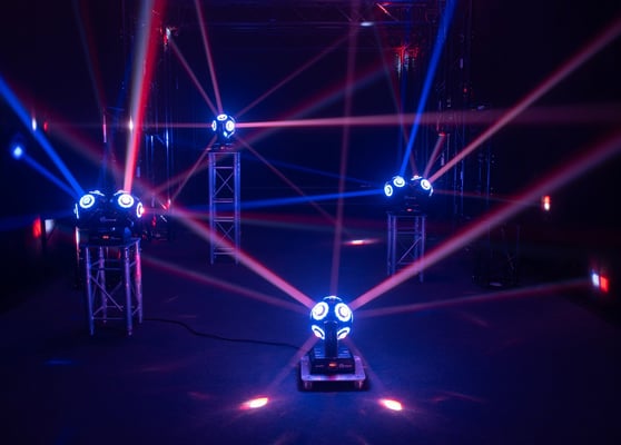 Entrez dans une nouvelle dimension avec l'effet central SIRIUS LX1215. Cet effet à PAN et TILT infinis projette des faisceaux de lumière qui remplissent toute la piste de danse.
