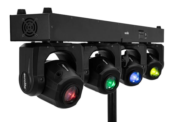 LED lighting system with 4 individually controllable 30 W moving heads, gobo- and color wheel