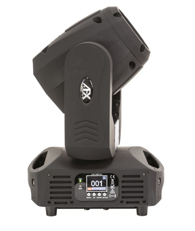 Control board with graphic LCD for adjusting the DMX-starting address, PAN/TILT reverse, reset, lamp on/off, operating hours