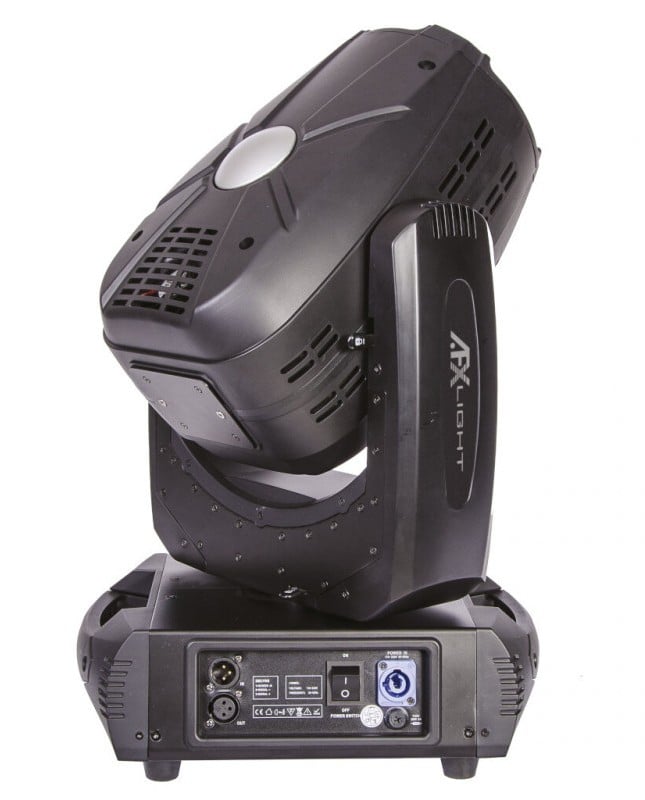 Bright, narrow beam with OSD 10 280W discharge lamp, color wheel, gobos and prisms