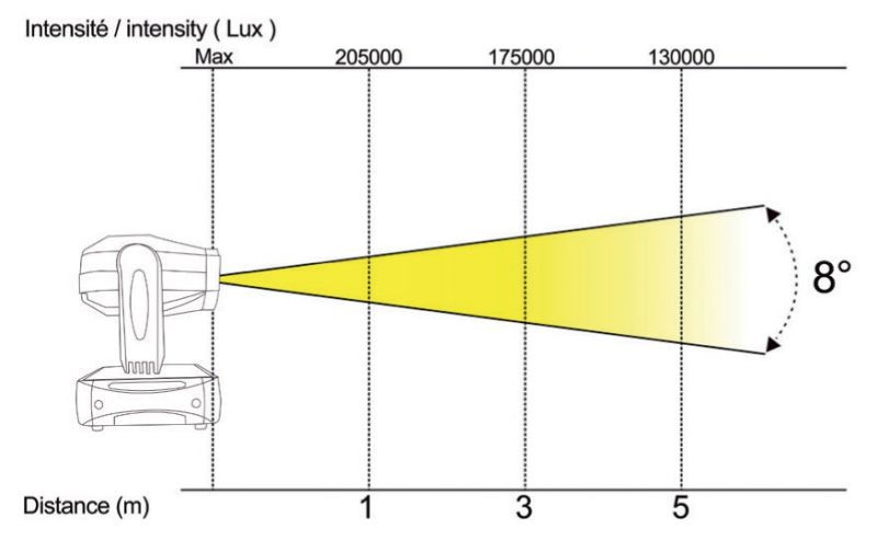 En combinaison avec la puissance lampe Osram Sirius 330 W offrant une excellente puissance lumineuse, le IB-16R s'impose comme l'outil ultime nécessaire pour les éclairages professionnels les plus exigeants. L'appareil délivre une très forte puissance lumineuse de 111000 Lux @ 15 m avec un angle de faisceau extrêmement fin de 1-4,5° en mode faisceau et de 5-19° en mode spot.