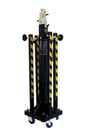 Stabilisateur avec goupilles de sécurité. Niveau à bulle pour ajuster la position verticale de la tour.