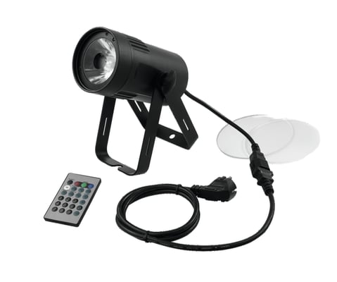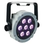 Flat spotlight with 5 x 3 W 3in1 LED (RGB) & one 3 W UV LED, incl. IR remote control