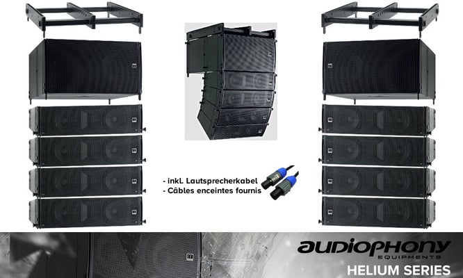 HELIUM SET 4 - Système Line Array professionel actif stéréo comprenant deux subbasses 2x10", 8 x HL-4 modules médiums/aigües, puissance 2 x 1040W RMS/2000W de crête.