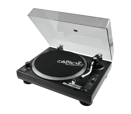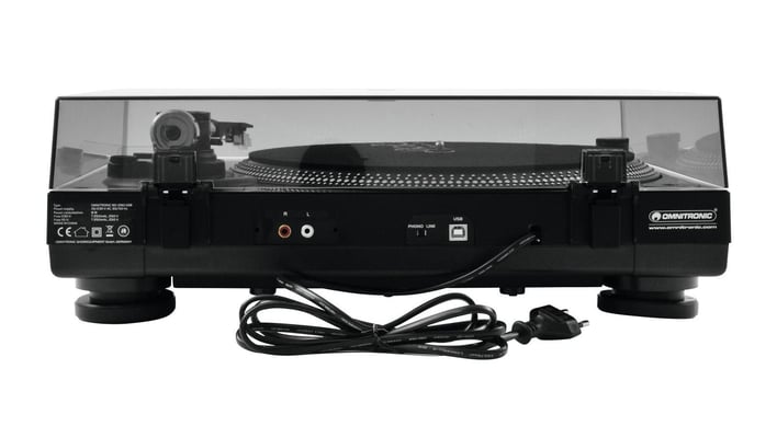 - Accessoires inclus : plateau, tapis antidérapant, éclairage à LED, contrepoids, Câble Phono RCA avec terre, adaptateur secteur, mode d'emploi